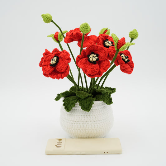 Handmade Crochet Poppy Pot, Hand-Knitted with 100% Cotton