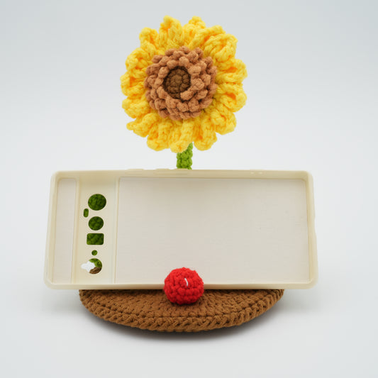 Handmade Crochet Phone Stand, Sunflower, 100% Hand-Knitted