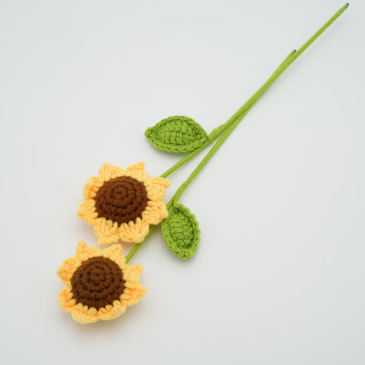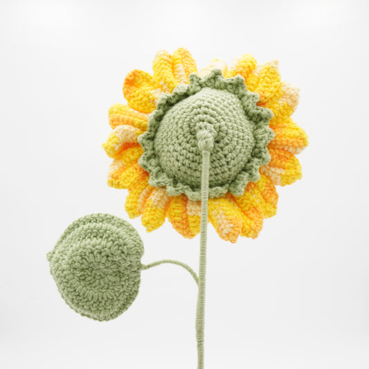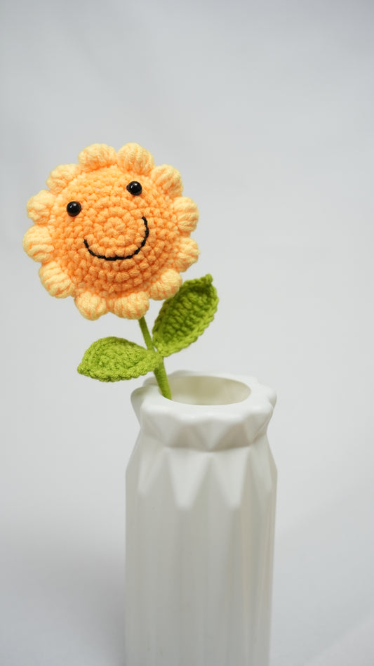 Handmade Crochet Sunflower with Smiling Face, Hand-Knitted with 100% Cotton