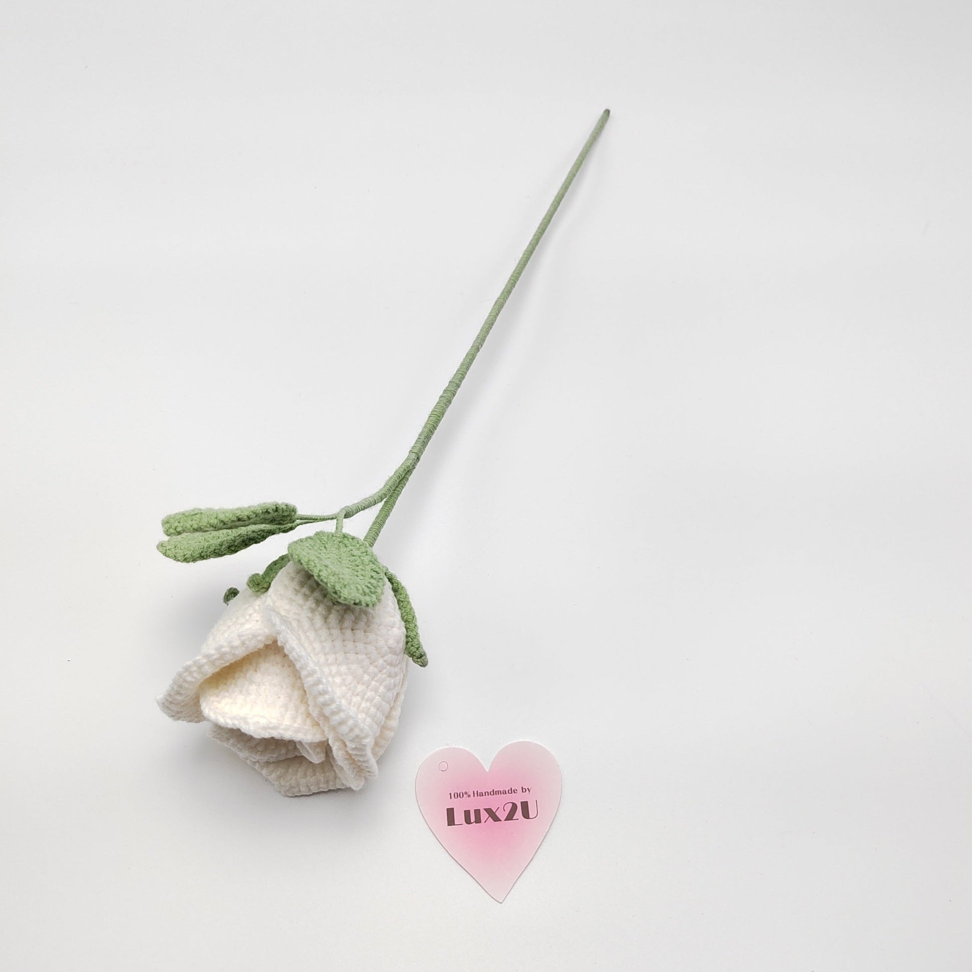 Handmade Crochet Rose Wine with Leaves and Long Stem, Hand-Knitted with 100% Cotton
